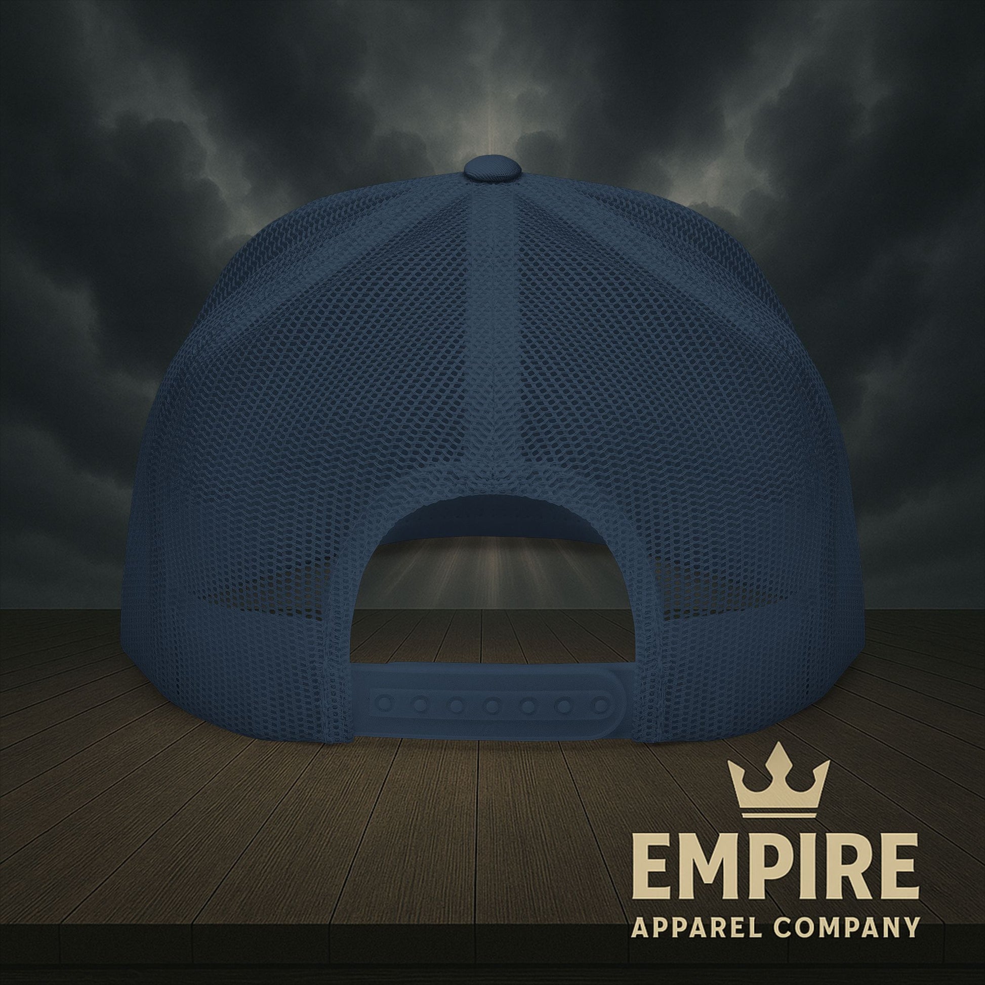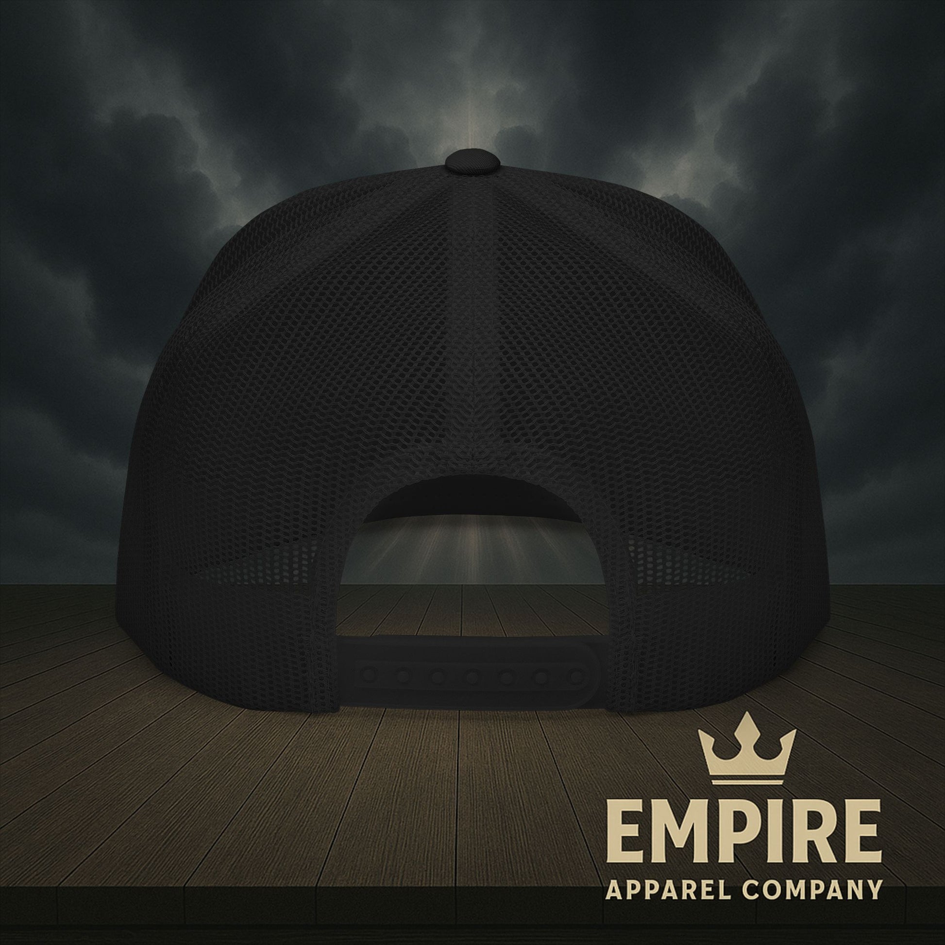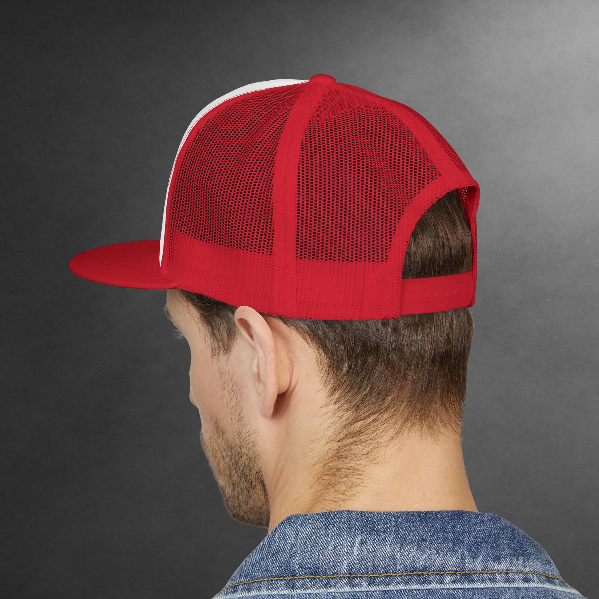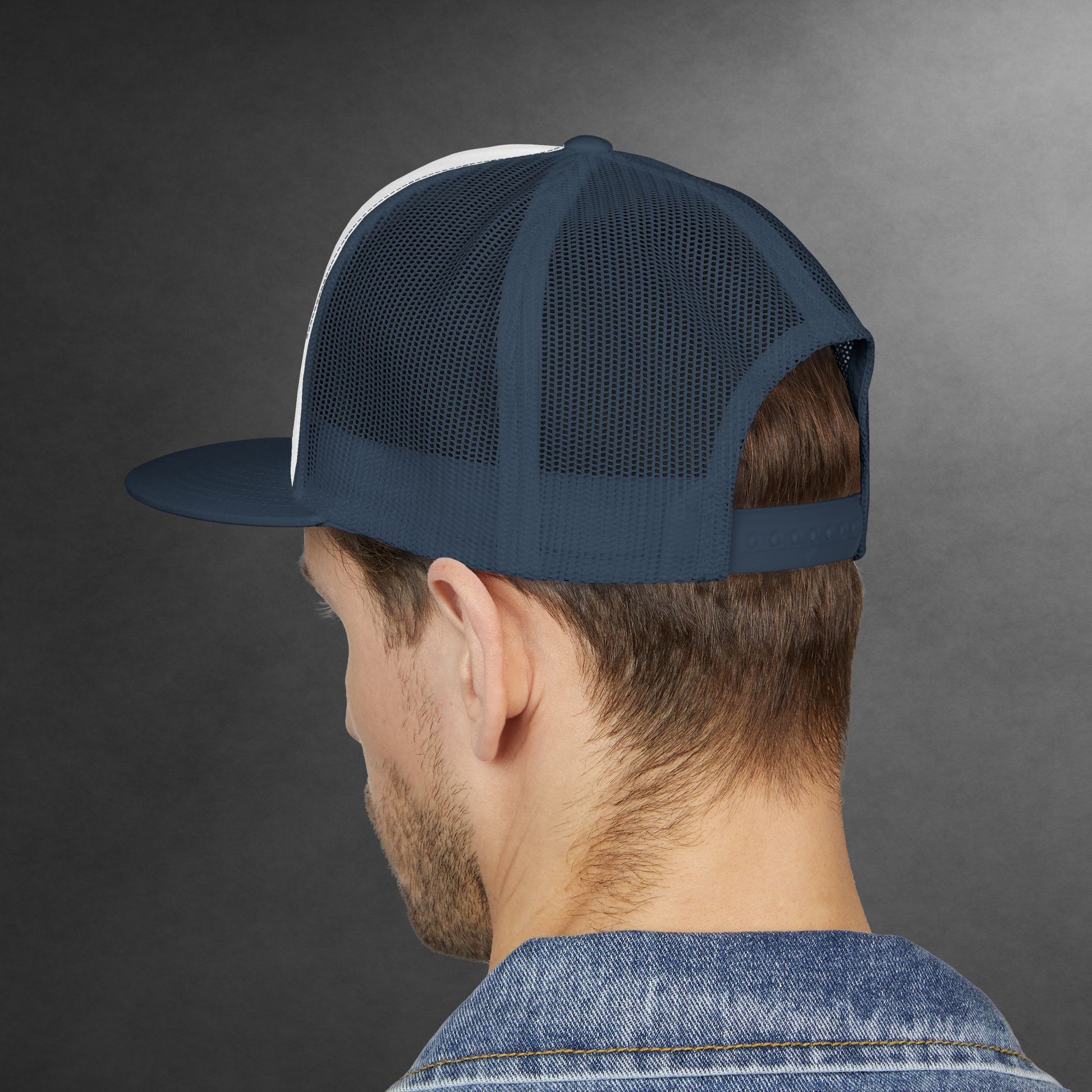 🧢 Classic trucker style – Structured 5-panel build with high-profile crown and flat bill.